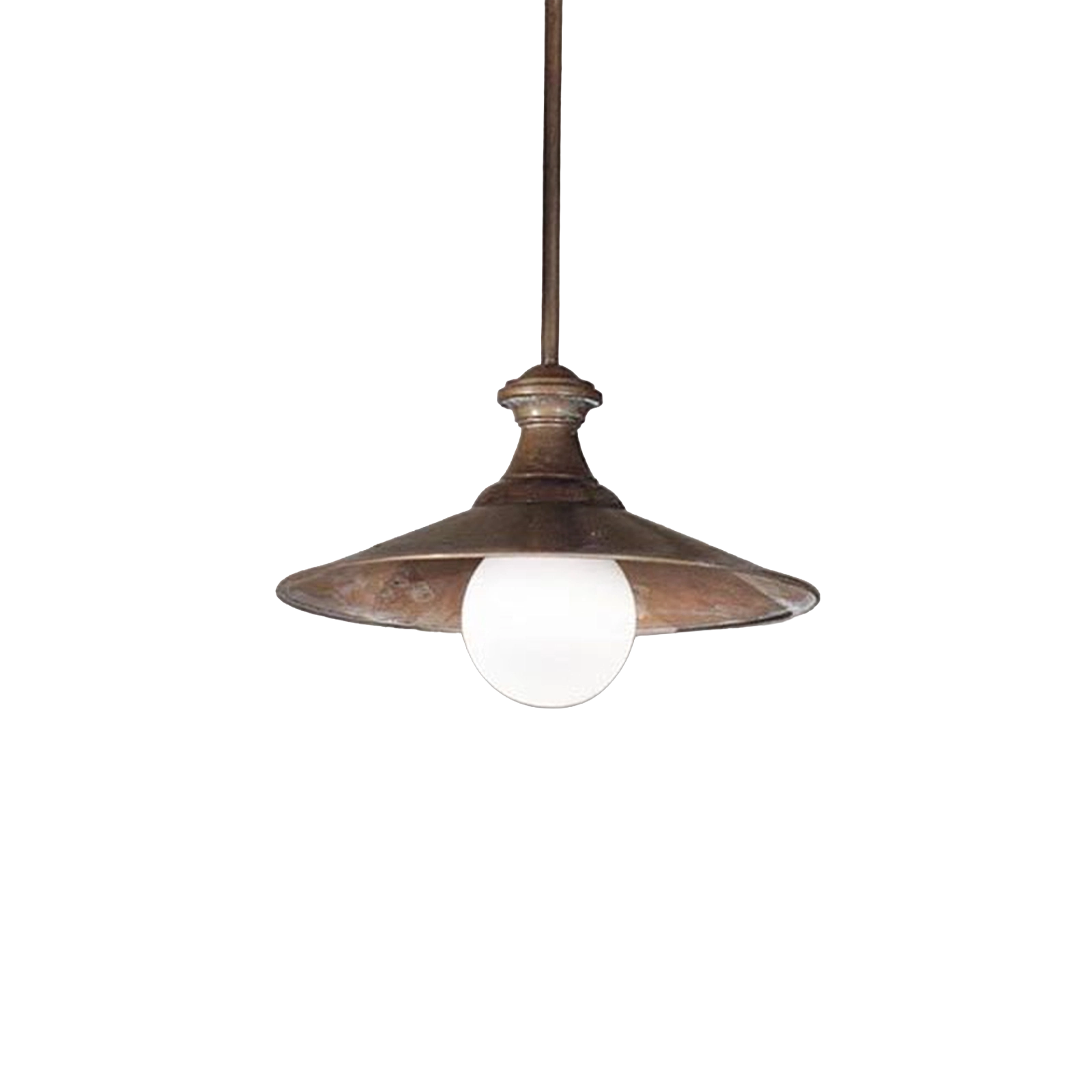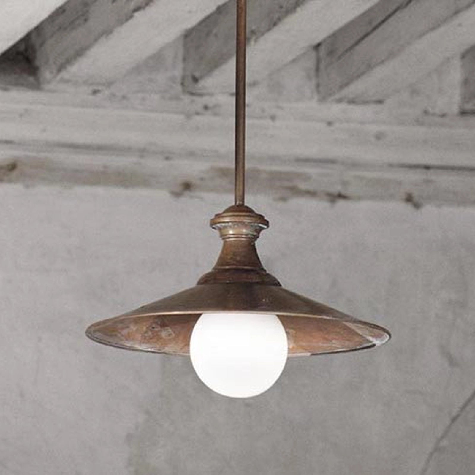 LOGGIATO è l'espressione massima dell'artigianato classico italiano. Questa lampada a sospensione tradizionale è realizzata con un corpo in Rame Anticato e rifinita con un rosone in fusione di Ottone Anticatto, che ne garantisce l'autenticità e la durabilità. Il diffusore è in pregiato vetro soffiato di colore bianco latte lucido, che assicura una luce diffusa e accogliente. Un dettaglio fondamentale è l'asta telescopica regolabile, che permette di adattare l'altezza al momento dell'installazione. Perfetta per illuminare loggiati, taverne, sale da pranzo o ambienti dal gusto rustico-elegante. Attacco E.27.